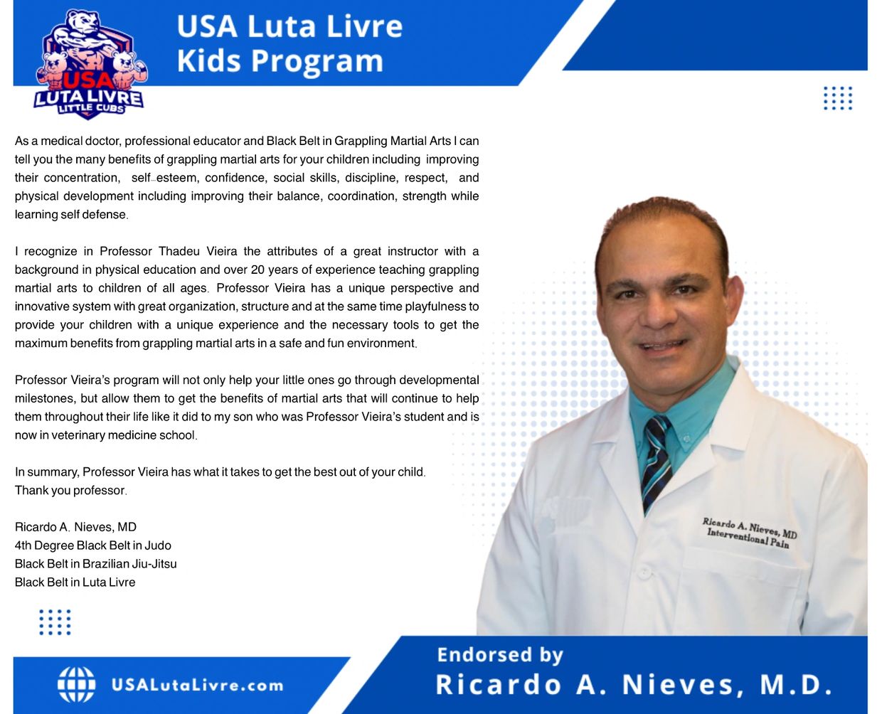Professor Vieira has taught Brazilian Jiu-Jitsu in Brazil, France, Germany, England, Canada, Puerto Rico and over 15 States in the USA. His mission today is to empower every student with the same passion at the Dojo, for children and adults. His biggest joy is to take the youth team in tournaments nationwide. The Vieira Kids Competition Team have an incomparable success rate of victories (click to see our medals count), individually and as a team, being the biggest single school/team winner of all Florida in the last decade with athletes right here from Sarasota and Manatee counties.